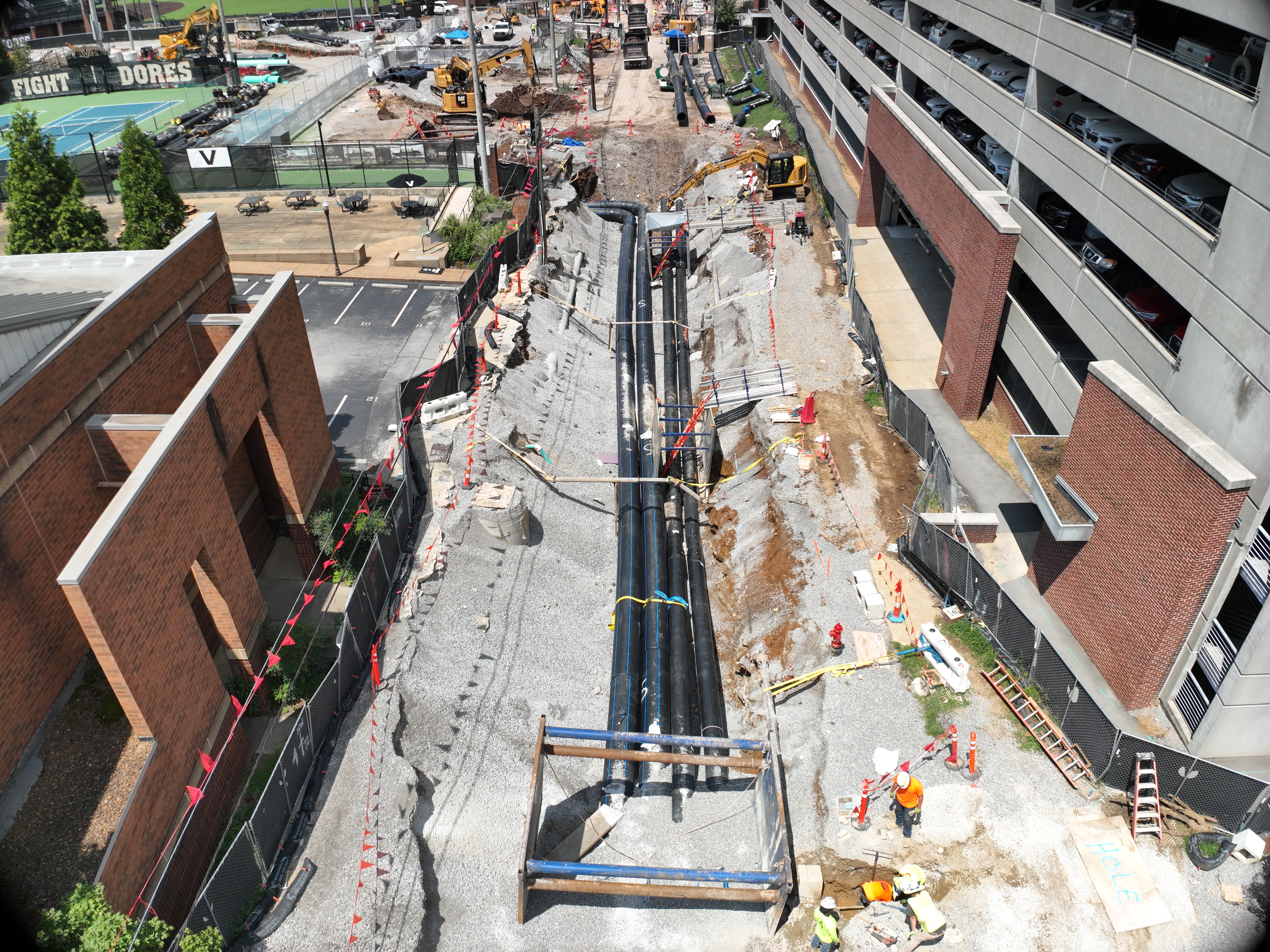 The Central Utilities Initiative (CUI) is a critical step for Vanderbilt, which has operated as a carbon-neutral campus since 2020, to support future growth and increase the resiliency and redundancy of the utility systems. The phased project included converting the original underground steam distribution system to hot water, new chilled water lines, burying overhead utilities and road improvements.